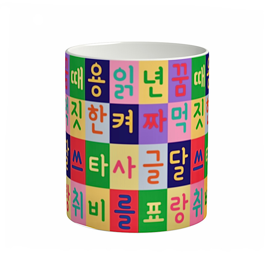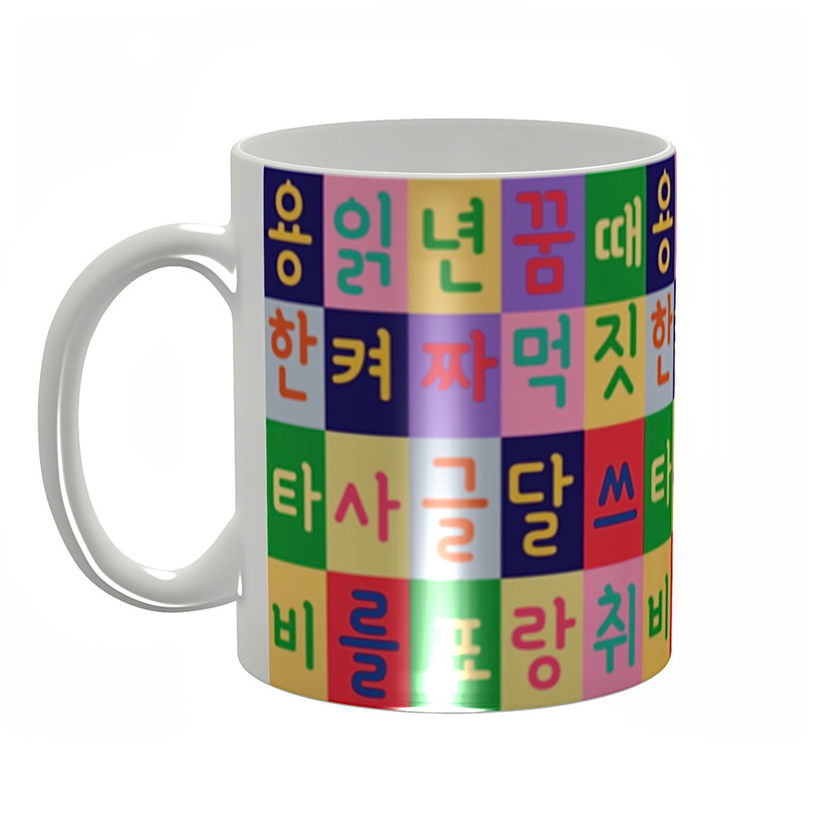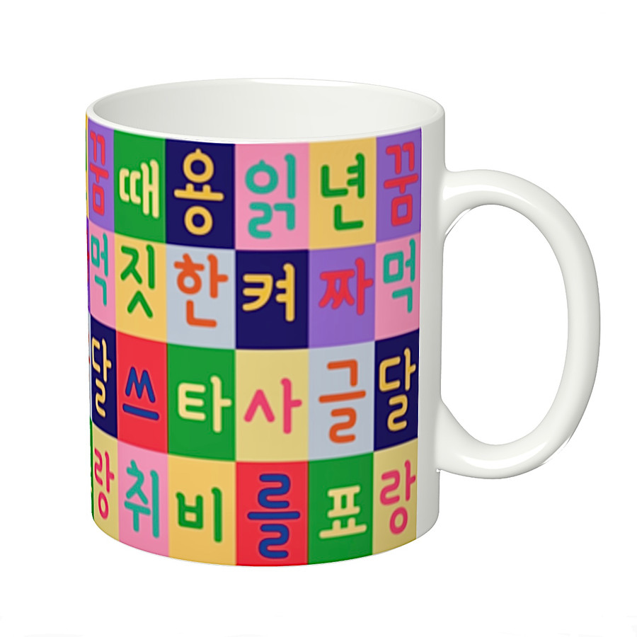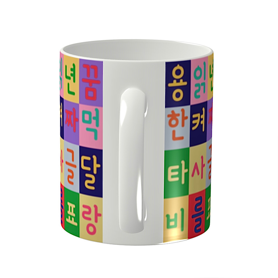世界記憶遺産でもあるハングル(訓民正音)を、渋めのカラーチェックの中に散りばめています。